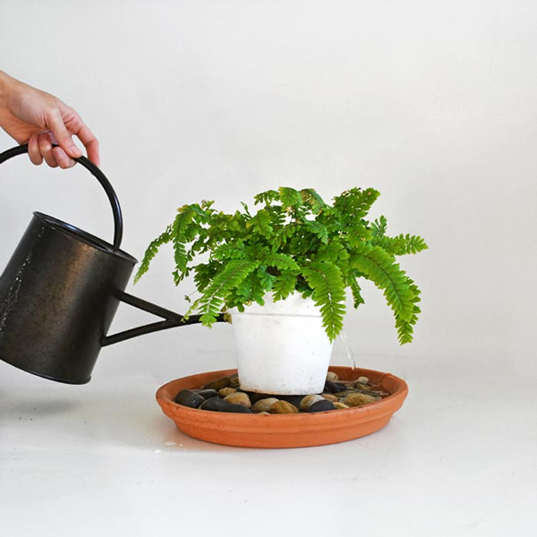 - درون سنگها آب بریزید. دقت کنید که آب نباید به بالای سنگها رسیده و کف گلدان را خیس کند.