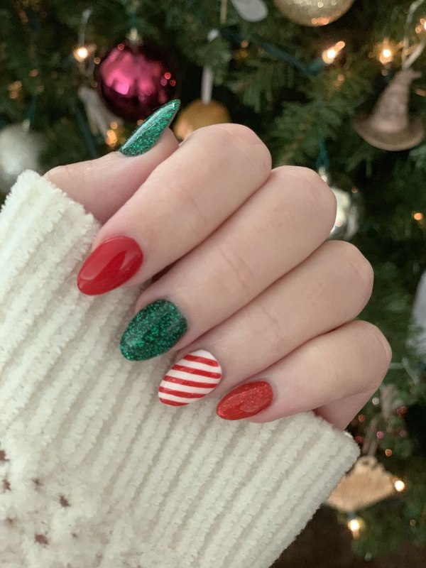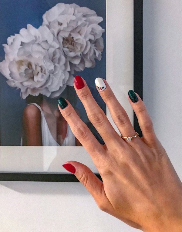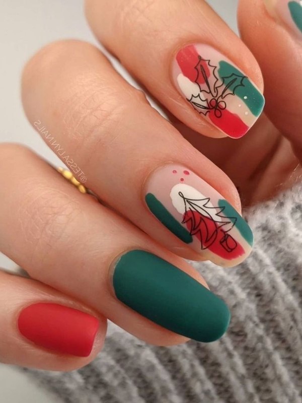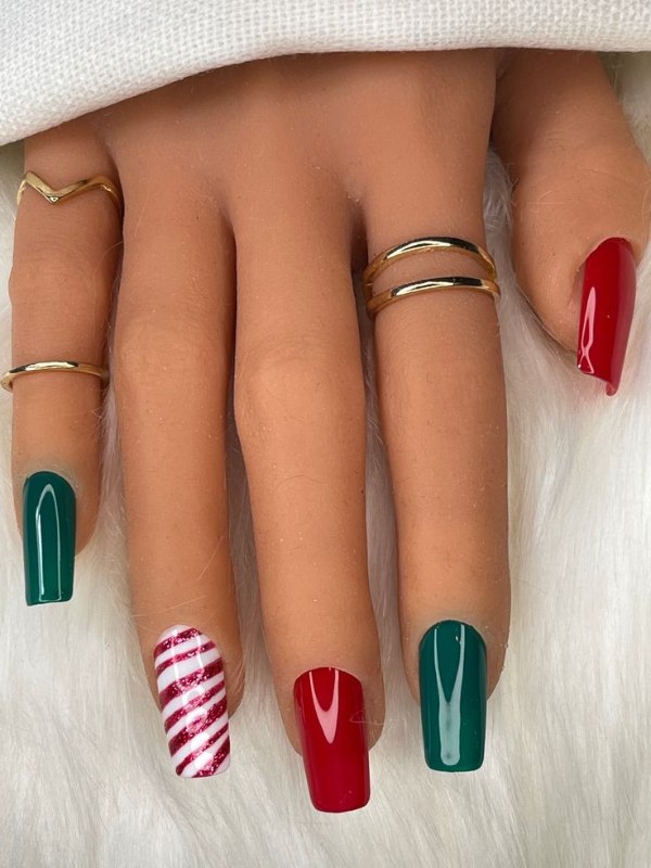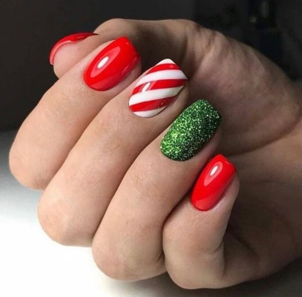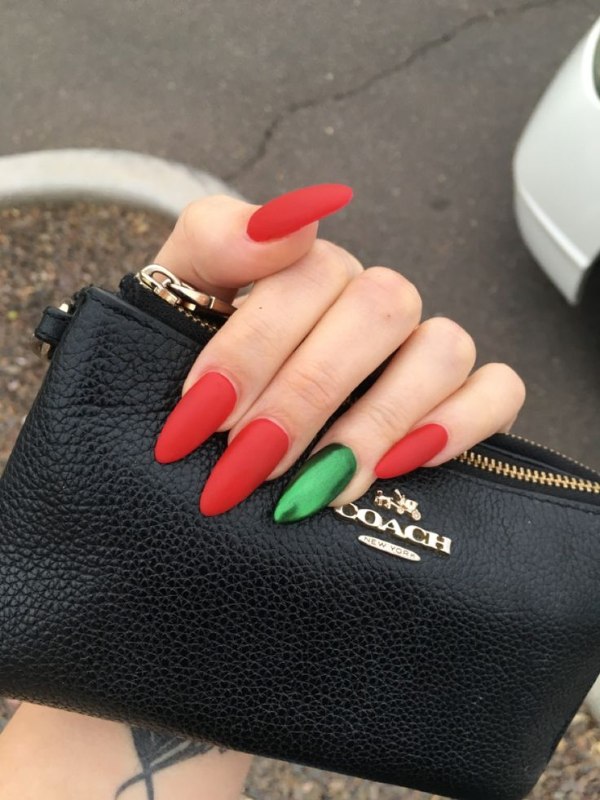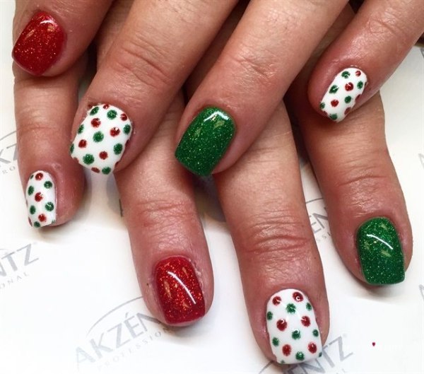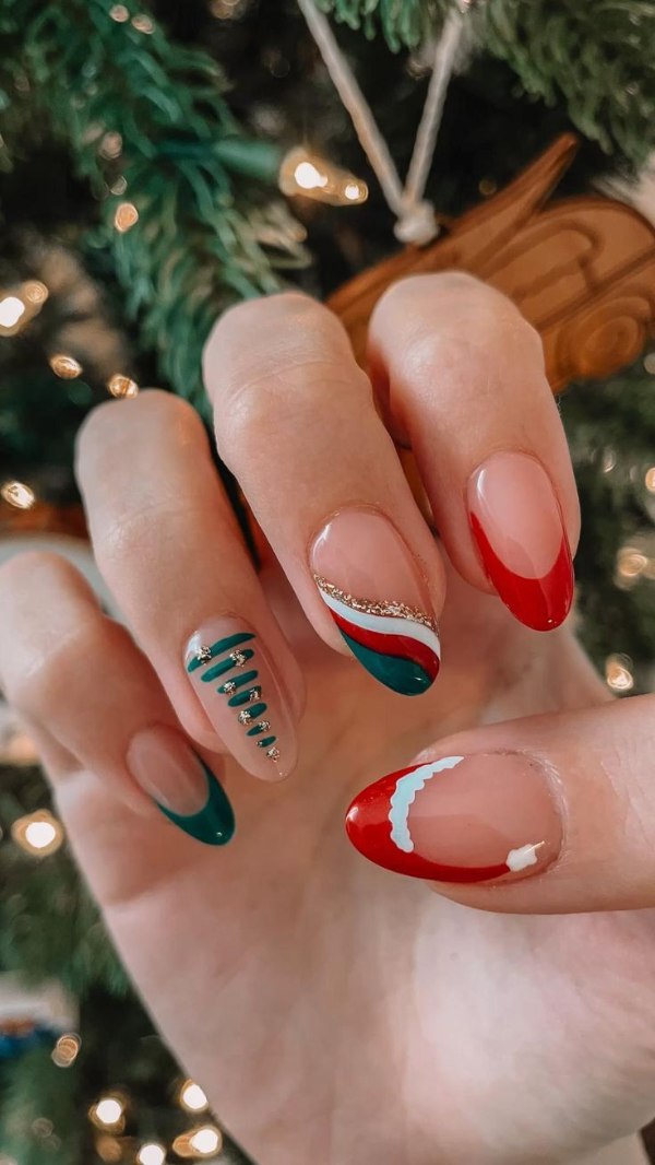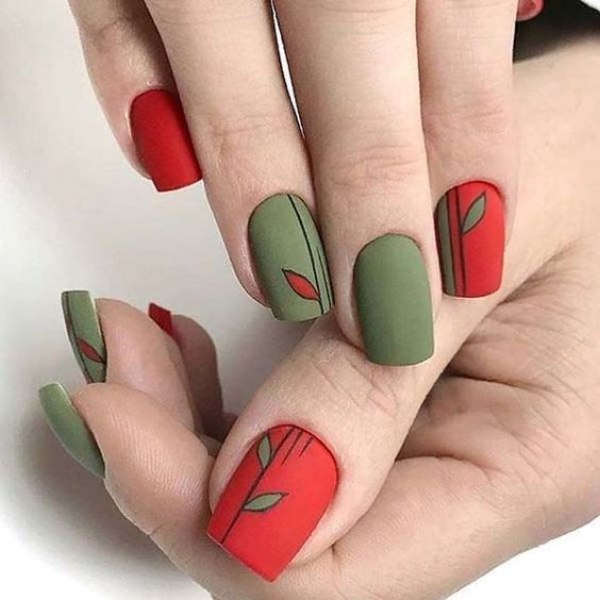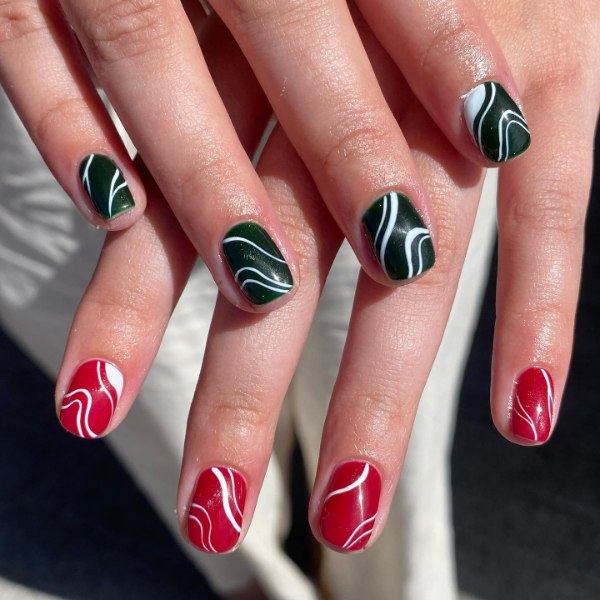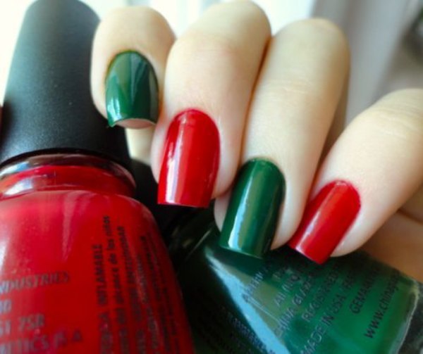 ایده ناخن با ترکیب رنگ سبز و قرمز