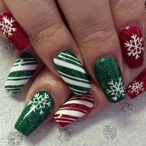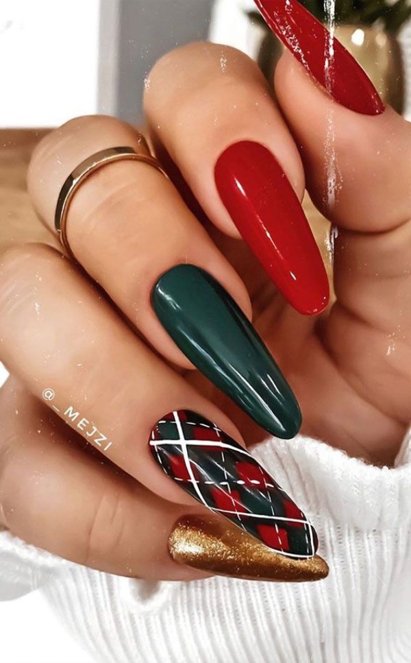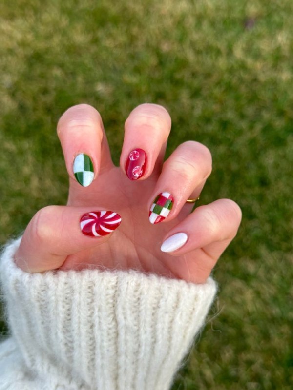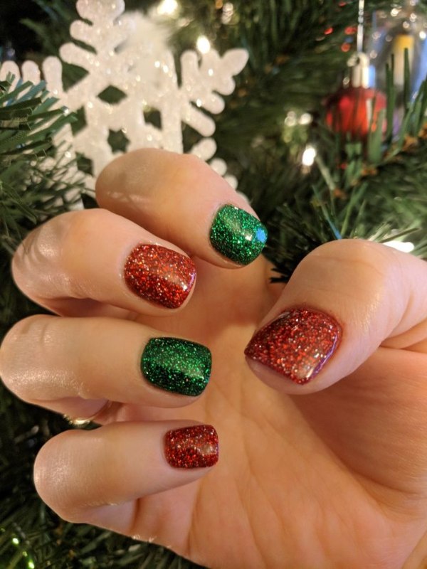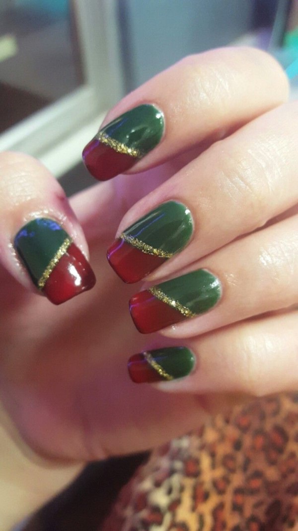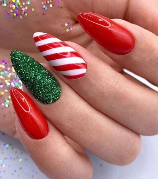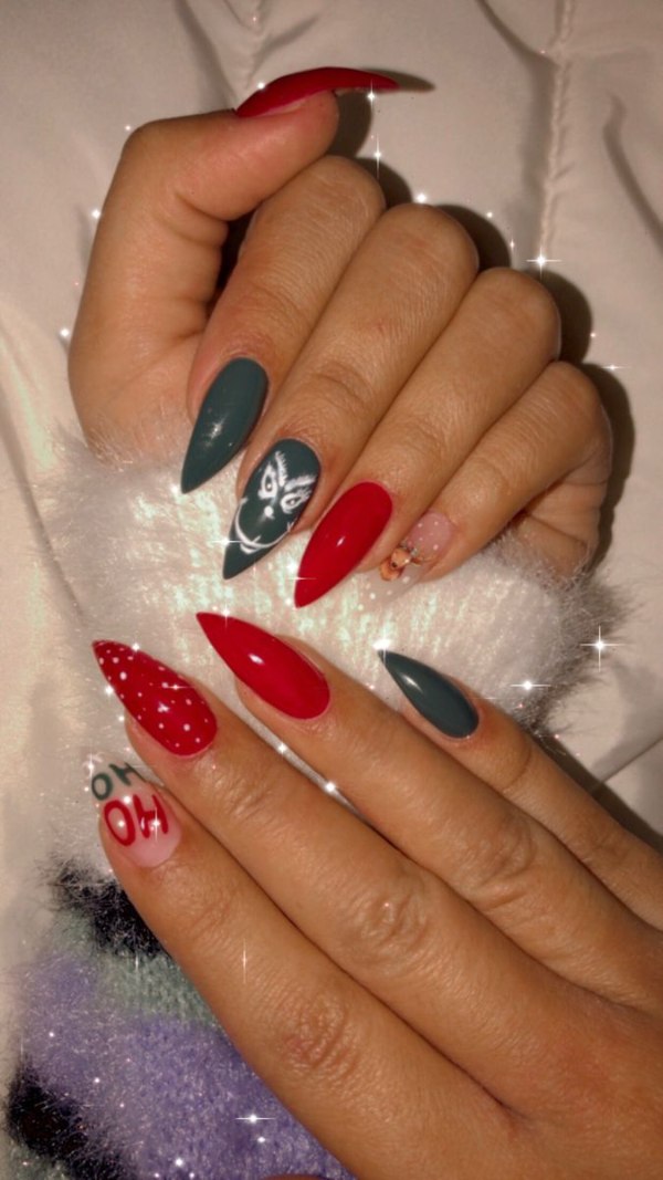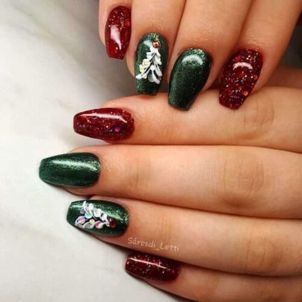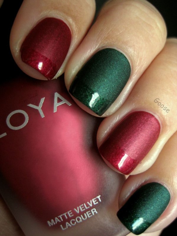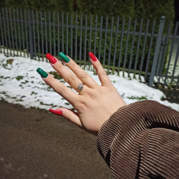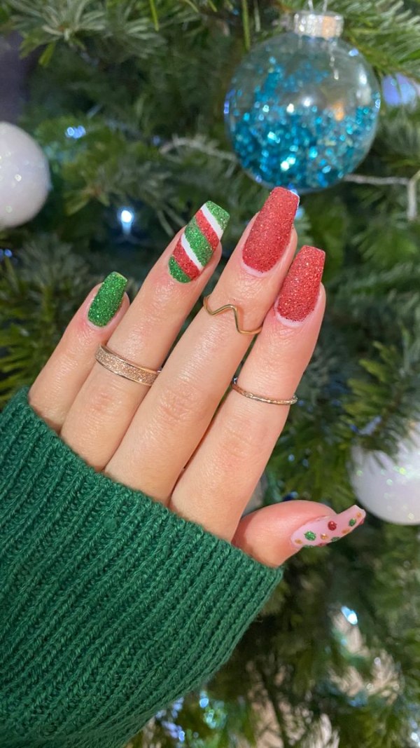 ایده ناخن با ترکیب رنگ سبز و قرمز