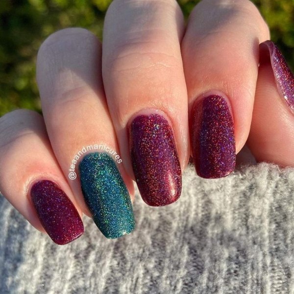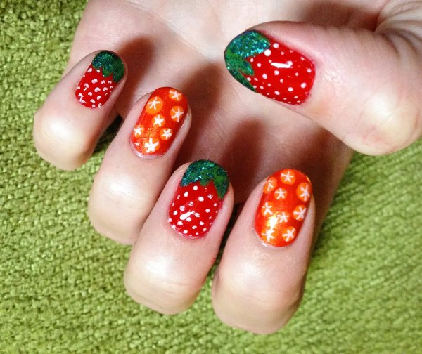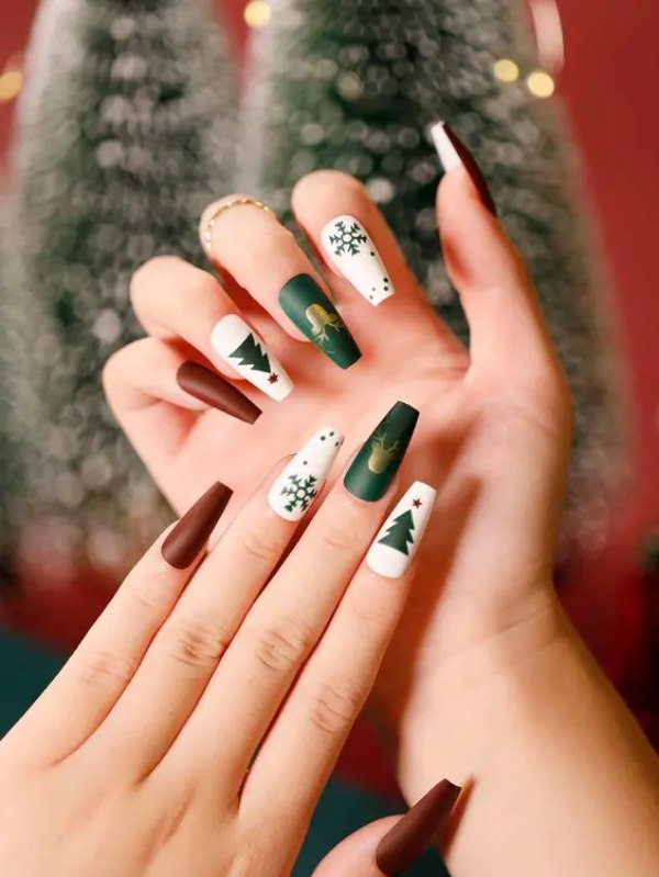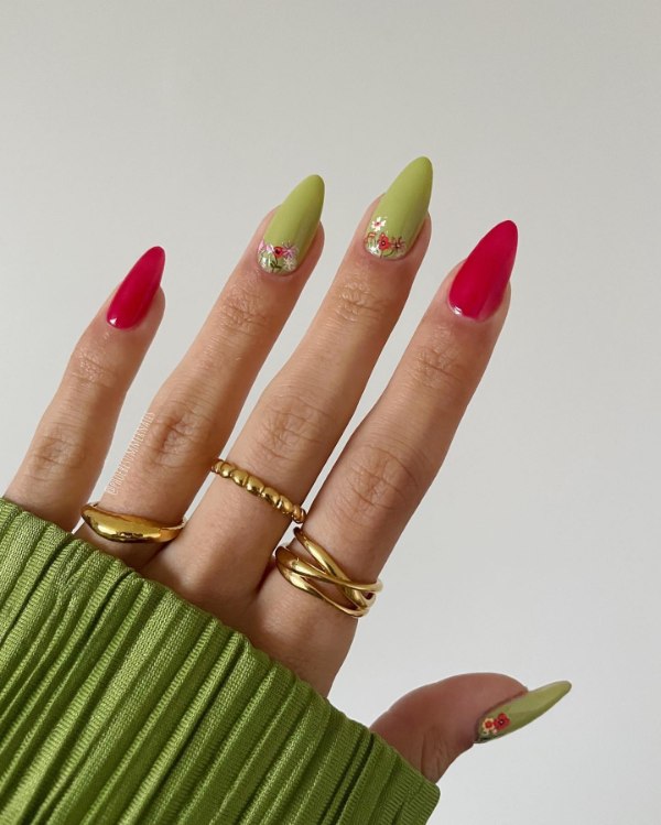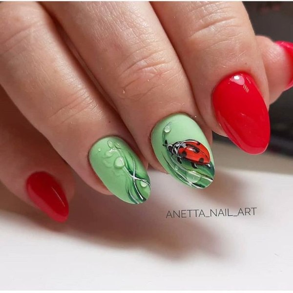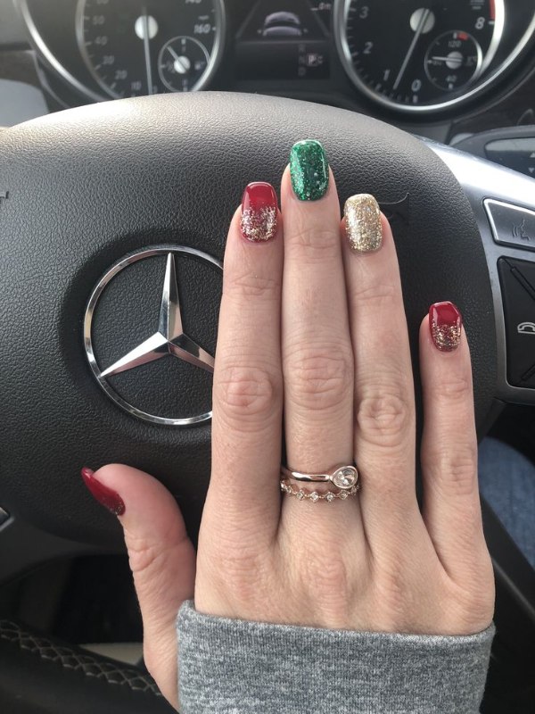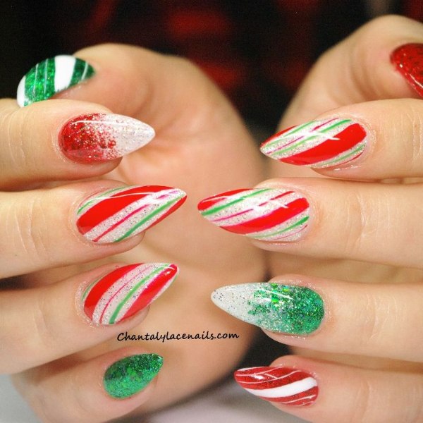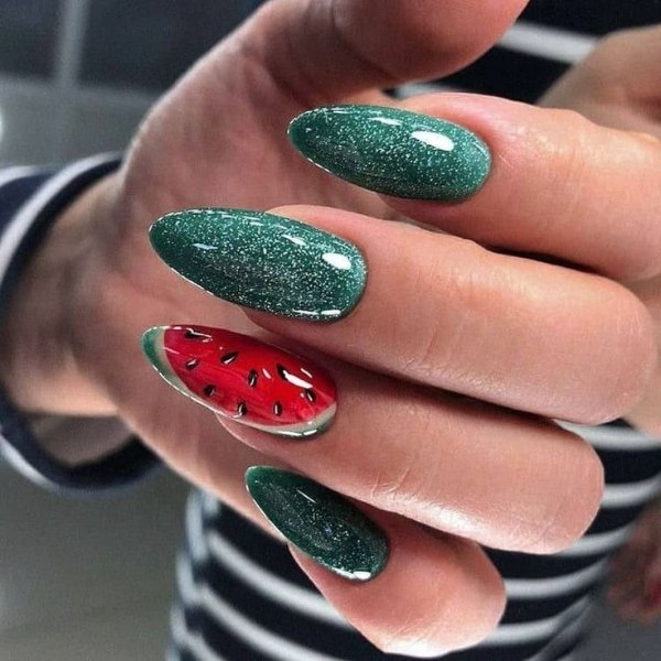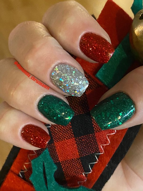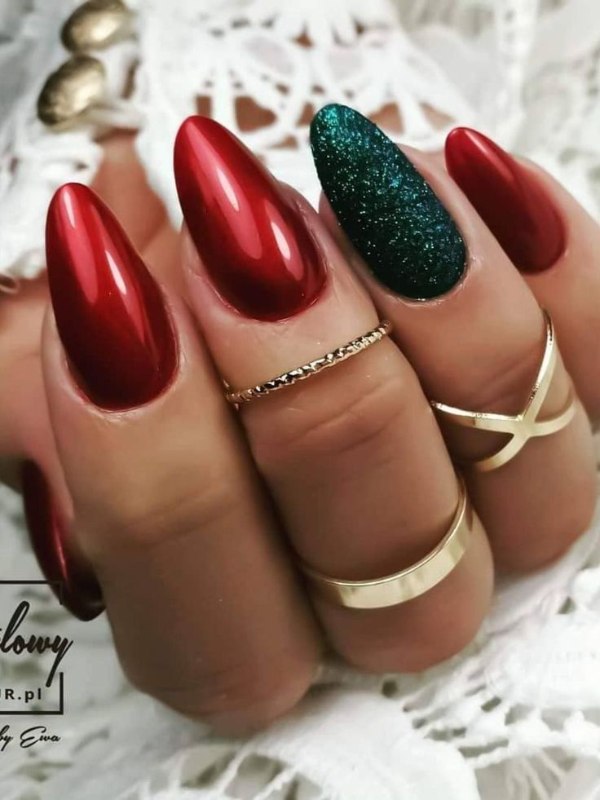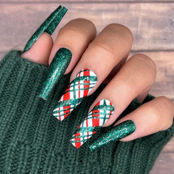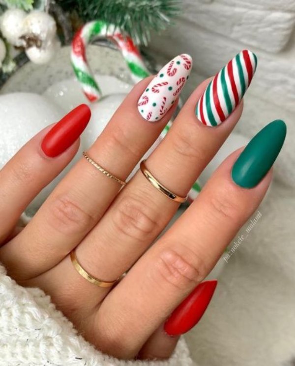 ایده ناخن با ترکیب رنگ سبز و قرمز