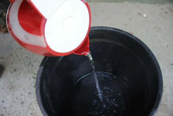 مرحله ۵: آب گرم را در یک سطل دیگر بریزید