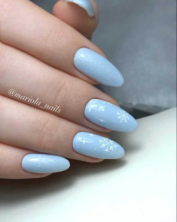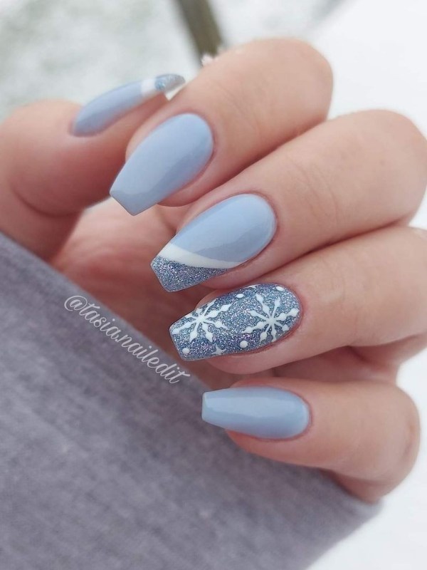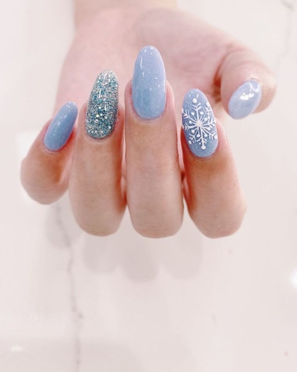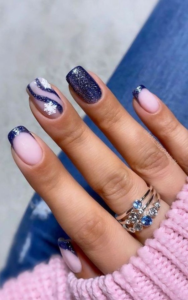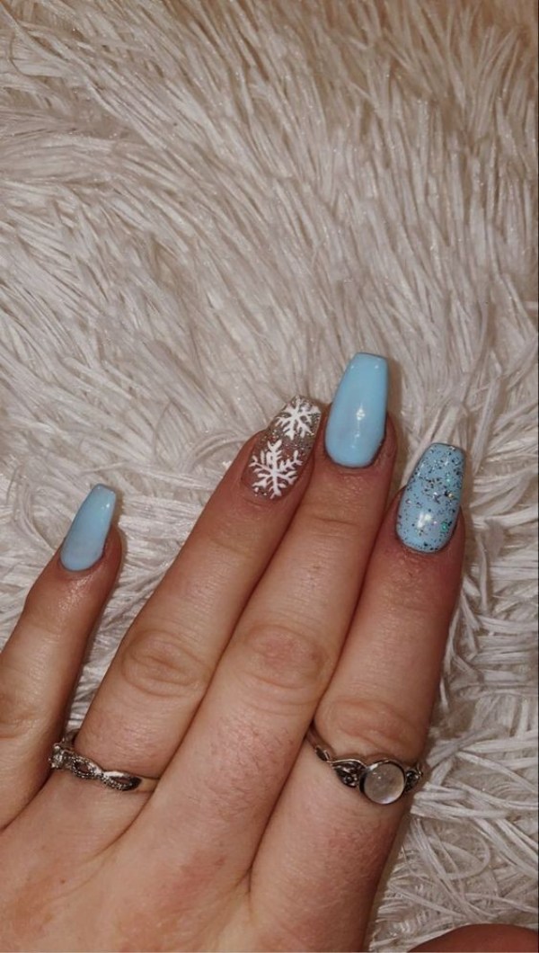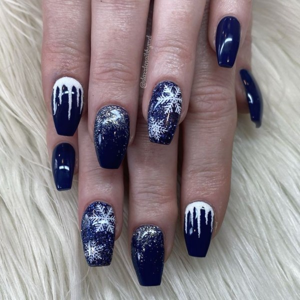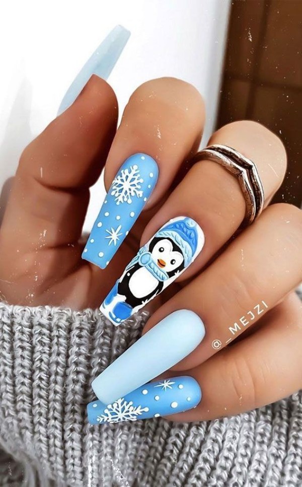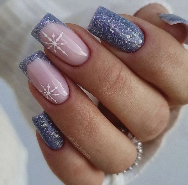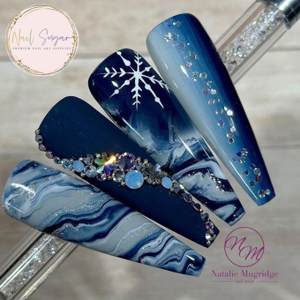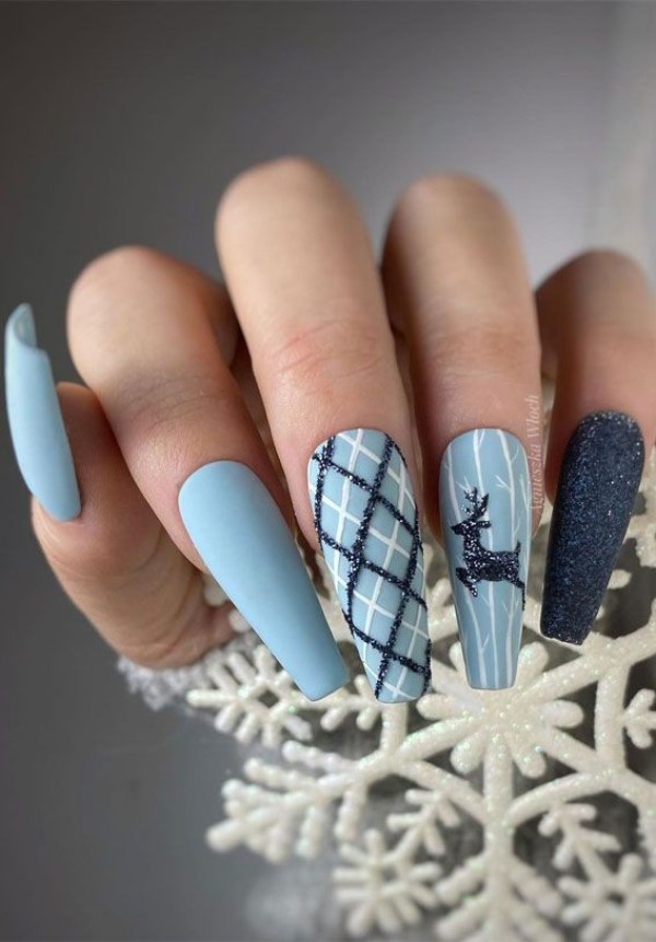 ناخن آبی رنگ با تم زمستانی