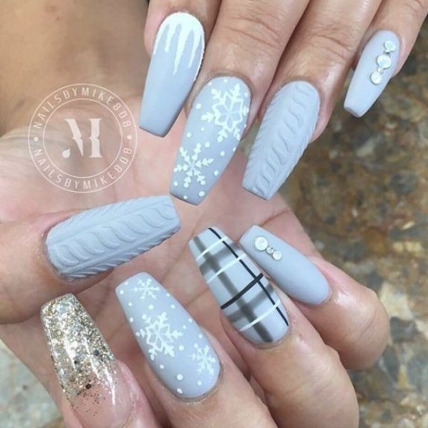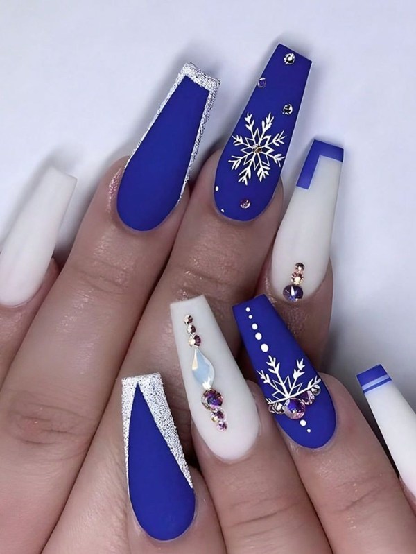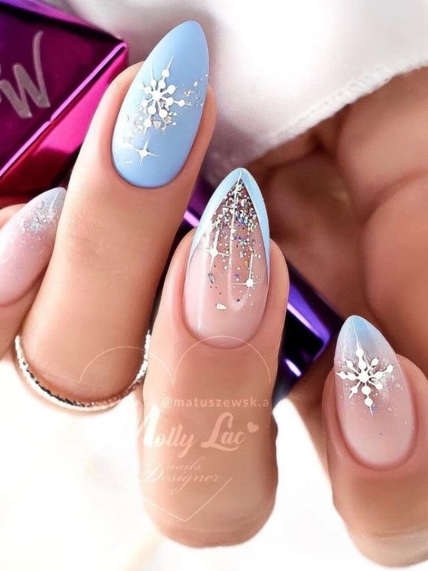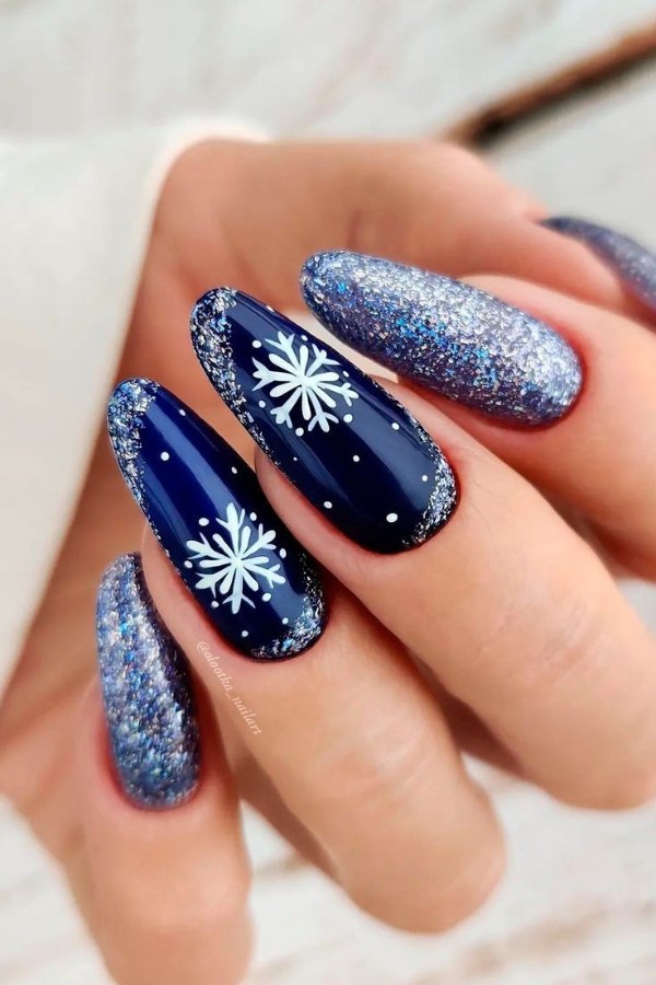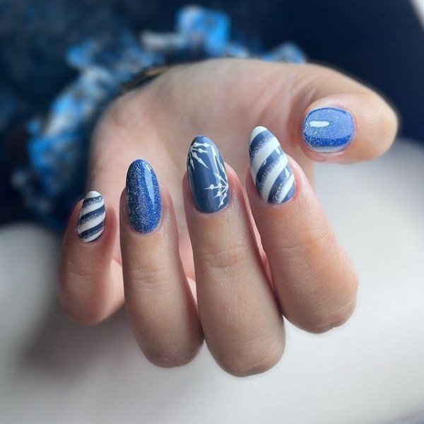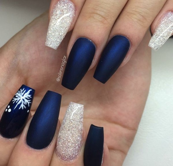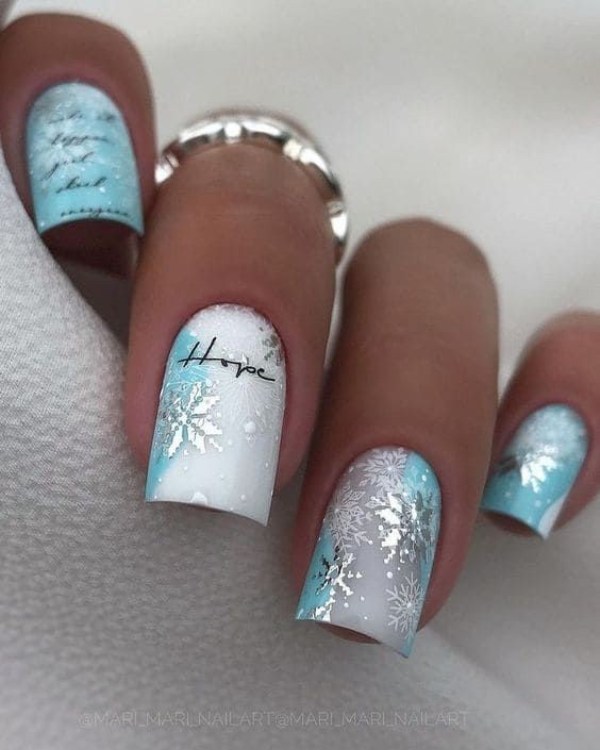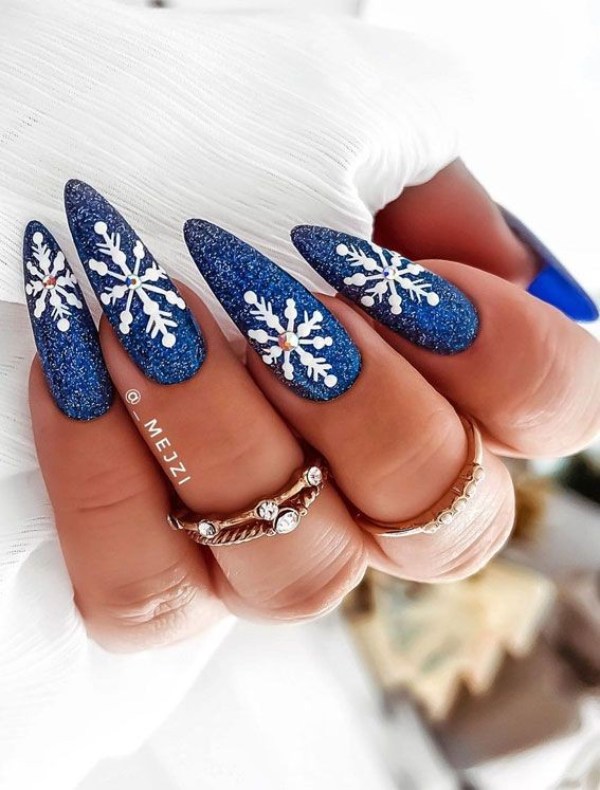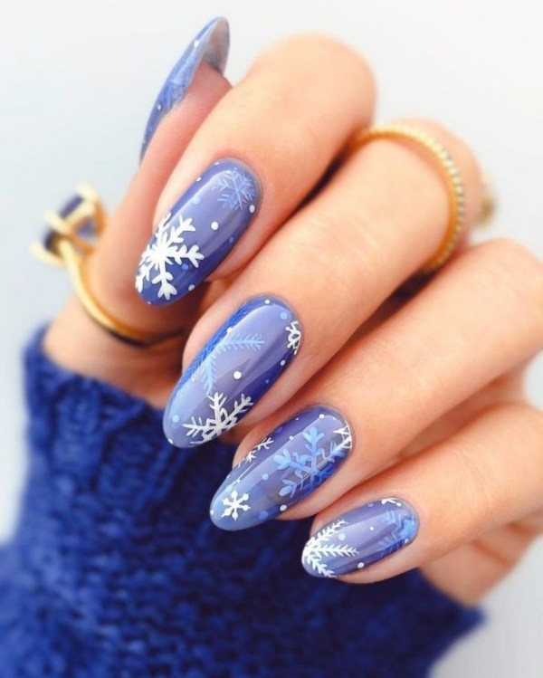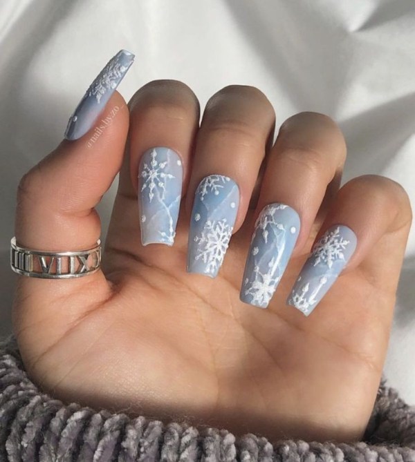 ناخن آبی رنگ با تم زمستانی