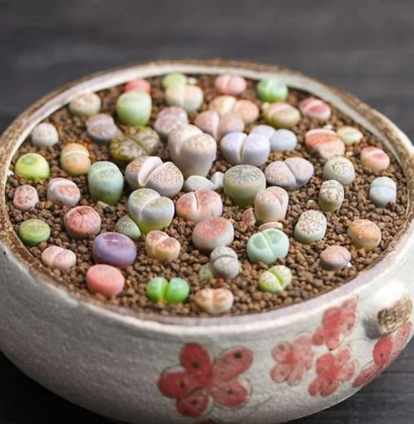 این گیاه همچنین به اسم “سنگ های زنده” نیز شناخته میشود؛ زیرا شکل آن ها بسیار شبیه سنگ است. این ساکولنت های منحصر به فرد این استراتژی ظاهری را برای پنهان شدن از حیوانات و آفات در طبیعت به کار میگیرند.