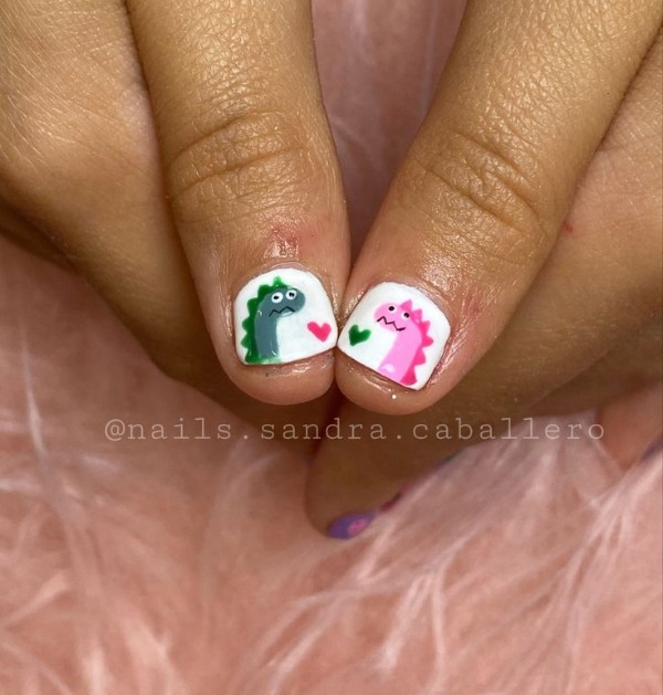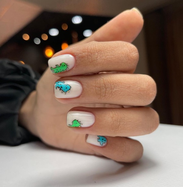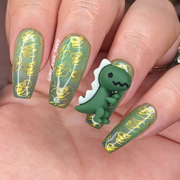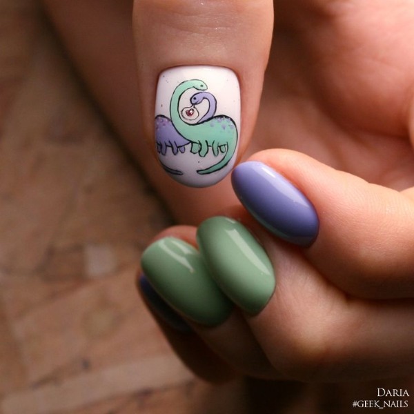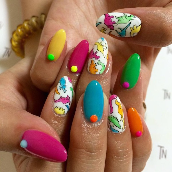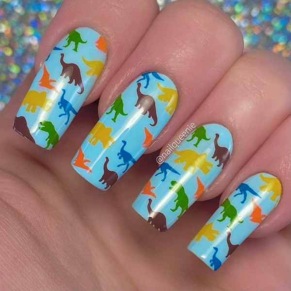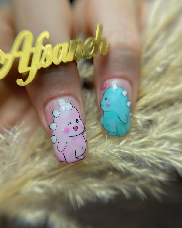 دایناسورها یکی از محبوبترین طرحها بین کودکان و نوجوانان و حتی جوانان هستند و ناخنهای دایناسوری عجیب آدم را وسوسه میکنند که طرح بعدی ناخنش، یک دایناسور بامزه باشد.