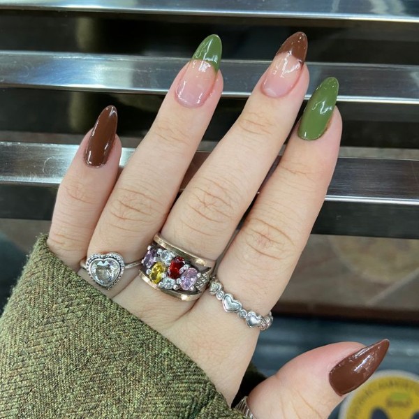 ترکیب دو رنگ کلاسیک قهوهای و سبز بسیار زیبا و خاص بوده و حس آرامش را به شما و مخاطب القا میکند. نمونههایی از ترکیب این دو رنگ زیبا روی ناخن را با هم ببینیم.