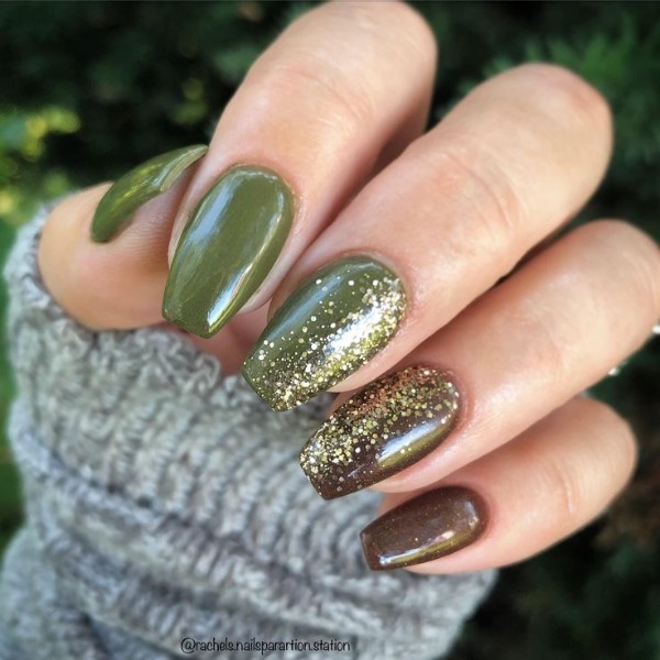 طرح ناخن با ترکیب دو رنگ قهوهای و سبز