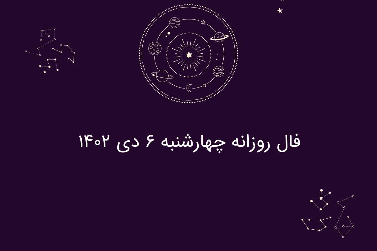 فال روزانه چهارشنبه 6 دی 1402: امروز چه اتفاقی برای شما میافتد؟ امروز ستارهها چه چیزی را برای شما پیش بینی میکنند؟ فال روزانه ماه تولد خود را بخوانید و ببنید چه چیزی در انتظار شماست.