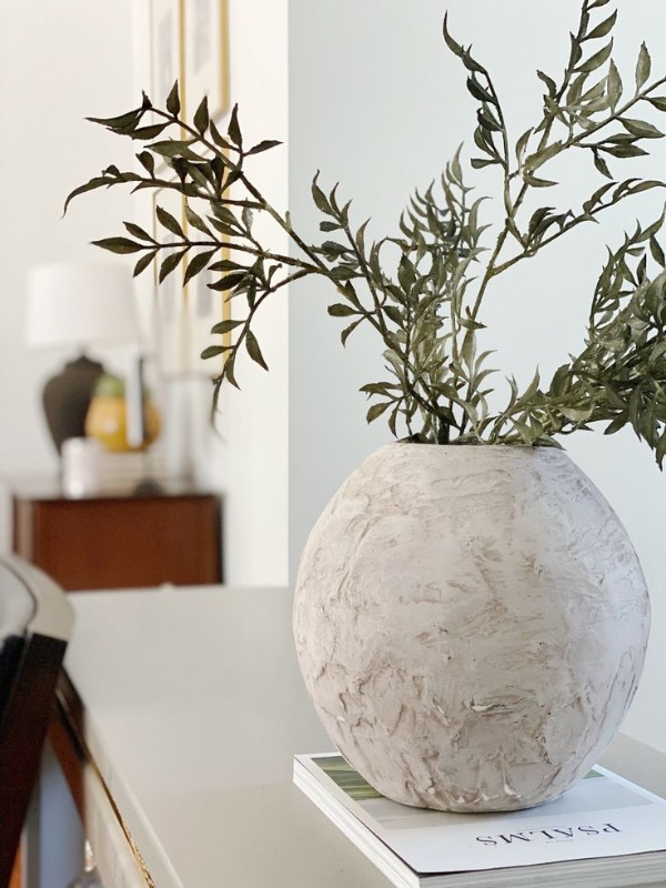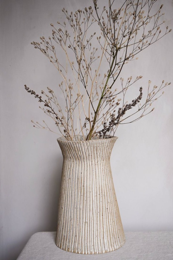 گلدان سنگی کوزه‌ای مینیمال سفید رنگ