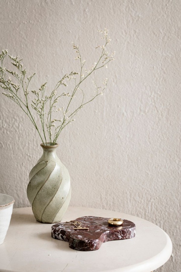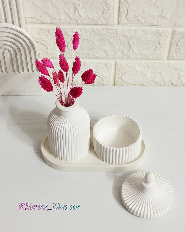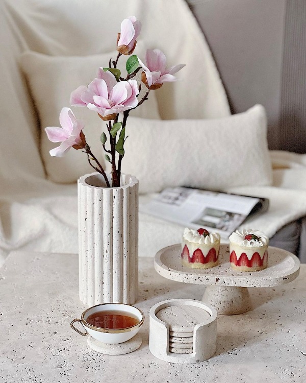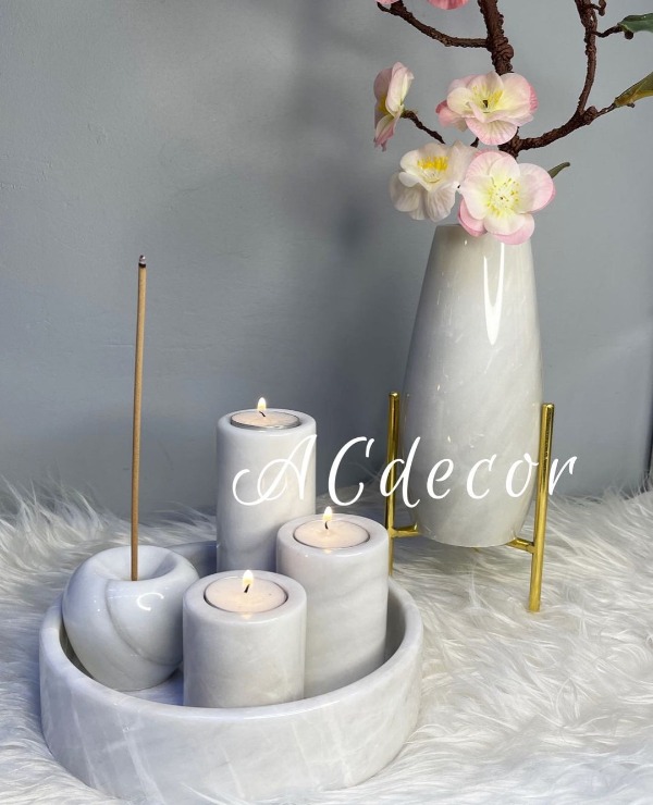 ست گلدان تراورتن سفید به همراه زیر لیوانی و شیرینی خوری
