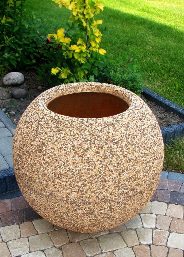 گلدان سنگی کاملا گرد مناسب برای باغچه