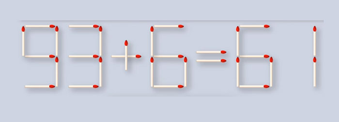 معمای چوب کبریتی ۶۱=۶+۹۳