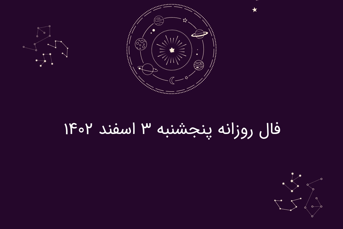 فال روزانه پنجشنبه 3 اسفند 1402: امروز چه اتفاقی برای شما میافتد؟ امروز ستارهها چه چیزی را برای شما پیش بینی میکنند؟ فال روزانه ماه تولد خود را بخوانید و ببنید چه چیزی در انتظار شماست.