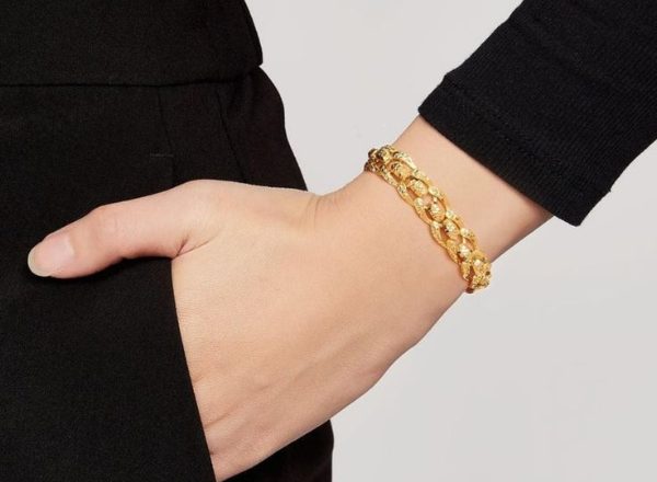 استفاده از دستبند پهن طلا یک انتخاب کلاسیک و جاودانه است. این اکسسوری را می توان برای مهمانیهای بزرگ و لاکچری استفاده کرد و ظاهر مجللی داشت.