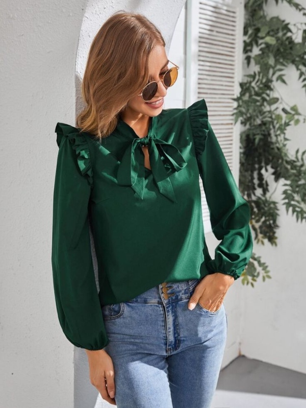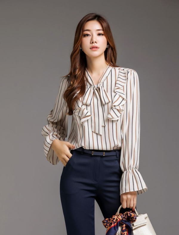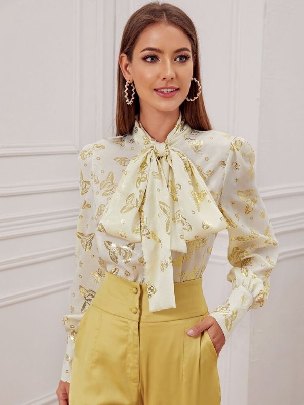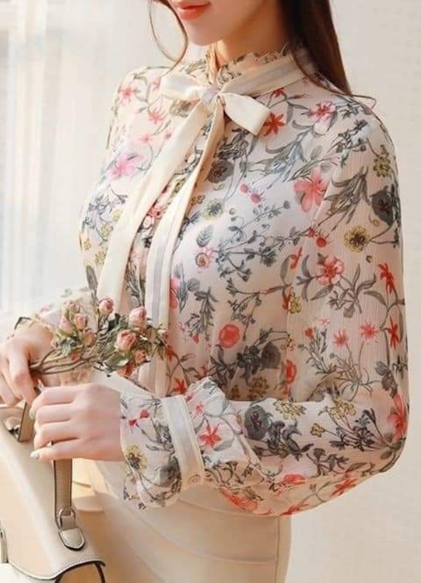 مدل بلوز با یقه پاپیونی