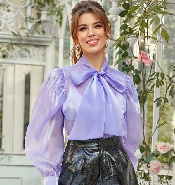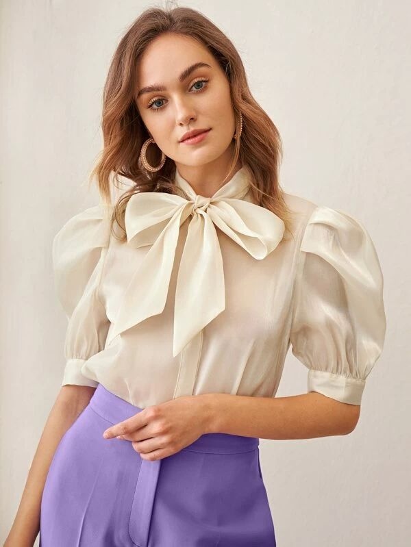همچنین شومیز یقه گرد پاپیونی با یقهای بستهتر از یقه هفت و برای موقعیتهای رسمیتر مناسبتر است و شومیزهای یقه پاپیونی با آستینهای پفی ظاهری فانتزی و دخترانه دارد و برای خانمهای جوان انتخابی جذاب است.