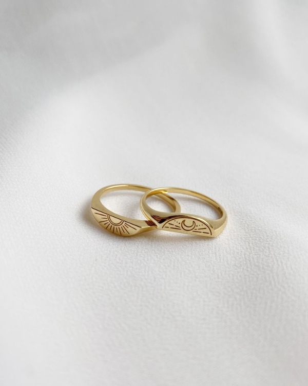 انگشترهای خورشیدی الهام گرفته شده از نماد های خورشید در ایران باستان هستند که میتواند با زیبایی خود هر چشمی را به خود خیره کند. این مدل انگشتر میتواند هر بانوی خاص پسندی را خوشحال کند و قابل ست کردن با دیگر محصولات خورشید و ماه است.