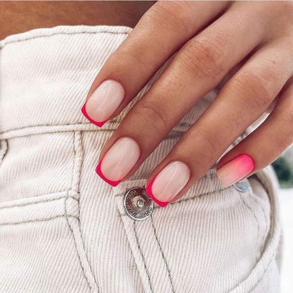 رنگ قرمز روی ناخنها همیشه یک گزینه جذاب و دوست داشتنی است اما به دلیل جیغ بودنش ممکن است مناسب همه استایلها و همه مناسبتها نباشد. فرنچ مینمال قرمز می تواند گزینه مناسبی برای استفاده از رنگ قرمز در طراحی ناخنهای ما باشد که در عین جذابیتی که در ناخن ما ایجاد می کند از شدت جیغی رنگ کاسته شود و ناخن را به بهترین شکل تزیین کند.