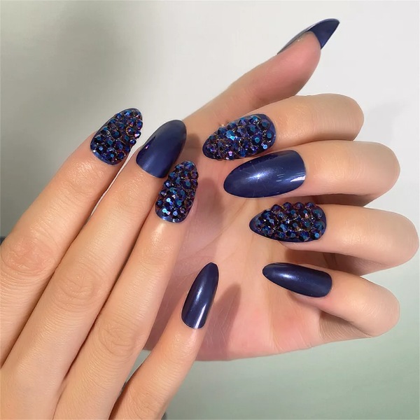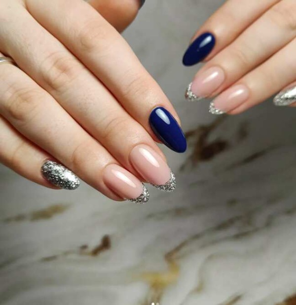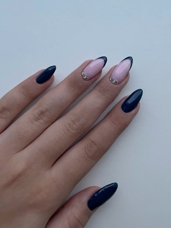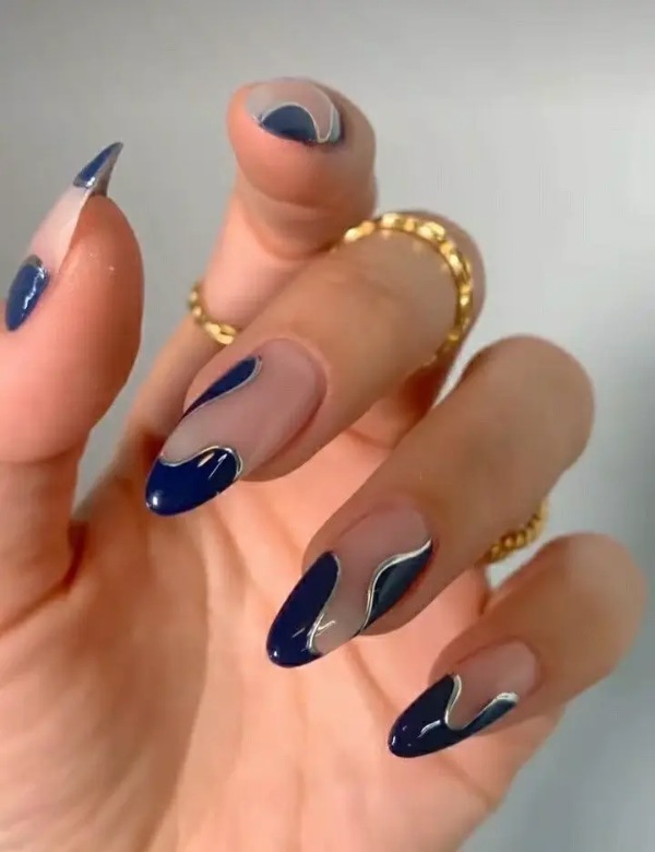 با مجموعهای زیبا و خاص از انواع طراحی ناخن با تم سرمه ای برای ناخنهای بادامی شکل همراه همیشگی ستاره باشید.