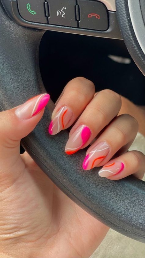 طرح ناخن صورتی و نارنجی