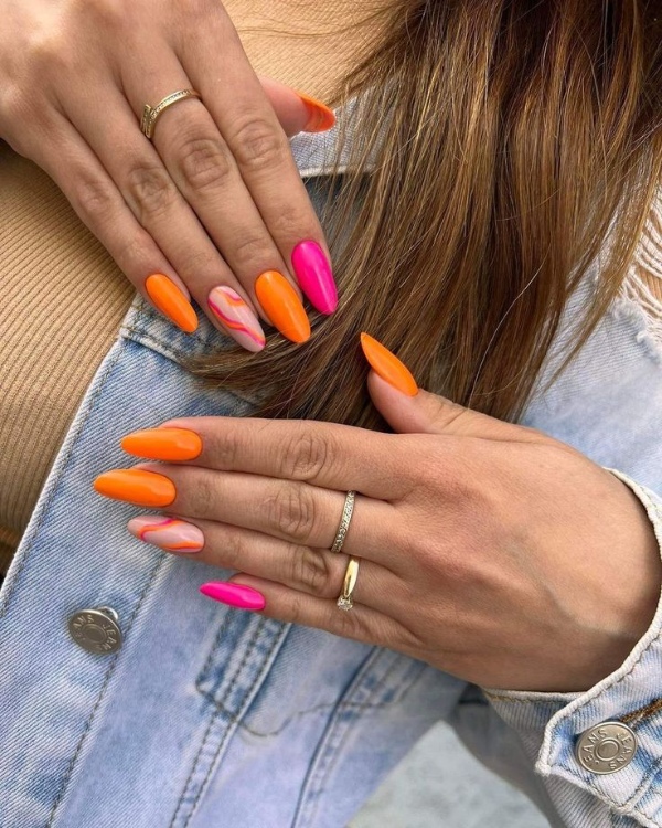 طرح ناخن با ترکیب رنگ صورتی و نارنجی میتواند بسیار زیبا و جذاب باشد. ناخنهای نارنجی و صورتی میتوانند ب چندین استایل مختلف ست شوند. با چند پیشنهاد برای ترکیب این رنگها با استایلهای مختلف همراه ما باشید: