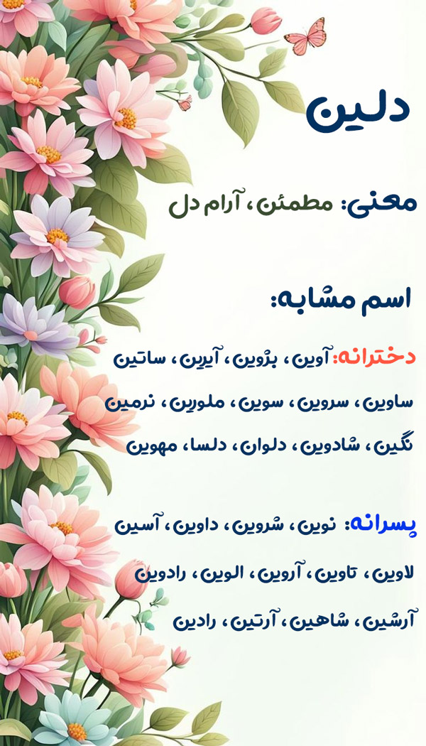 معنی اسم دخترانه دلین “مطمئن، آرام دل، آسوده” است.