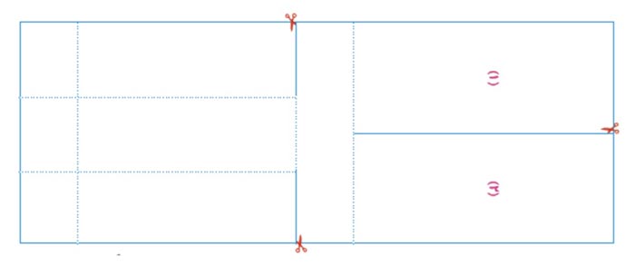- بخشهایی را که با خطهای پیوسته نشان داده شدهاند، ببُرید و از محلّ نقطه چین، مانند شکل تا بزنید.