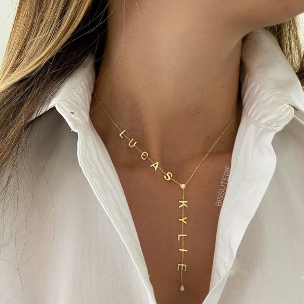 گردنبند حروف انگلیسی معمولاً به عنوان گردنبند اسم یا گردنبند حروف Initial شناخته میشود. این نوع گردنبندها معمولاً با حروف اول اسم یا نام مورد علاقه طراحی میشوند. آنها میتوانند از متریالهای مختلفی مانند طلا، نقره، استیل و… ساخته شوند و به عنوان هدیهها یا زیورآلات شخصی استفاده شوند. این گردنبندها به معنای خاص و منحصر به فرد بودن شخص و همچنین سبک شخصیتی او اشاره دارند.