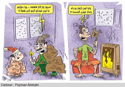 کاریکاتور مصرف بهینه گاز در بخاریهای گازی