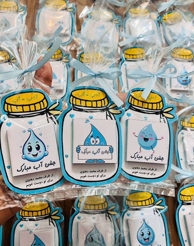 گیفت برای جشن آب کلاس اولی ها 1404 | برای جدیدترین مدل های گیفت جشن آب، تزیین دکور کلاس، کیک، تاج قطره آب و تزیین بطری همراه باشید.