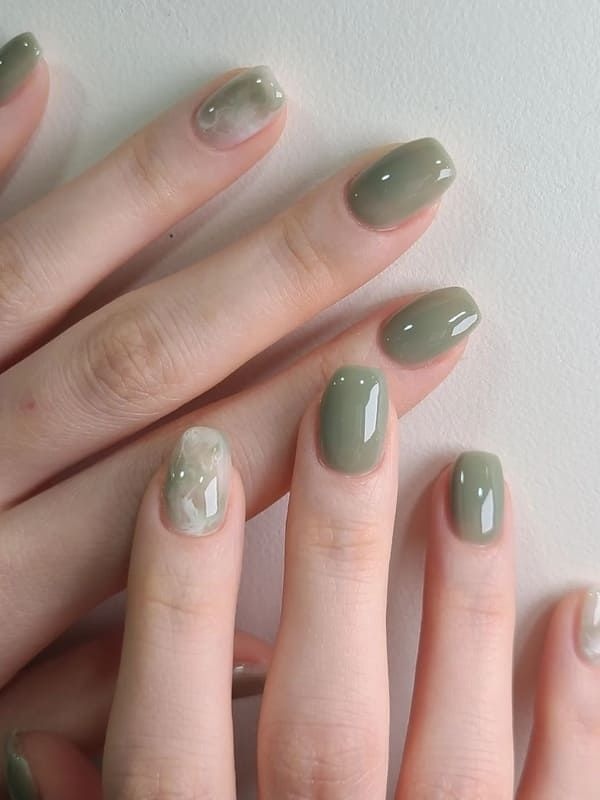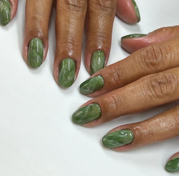 طرح مرمری سبز برای ناخن‌های کوتاه و گرد