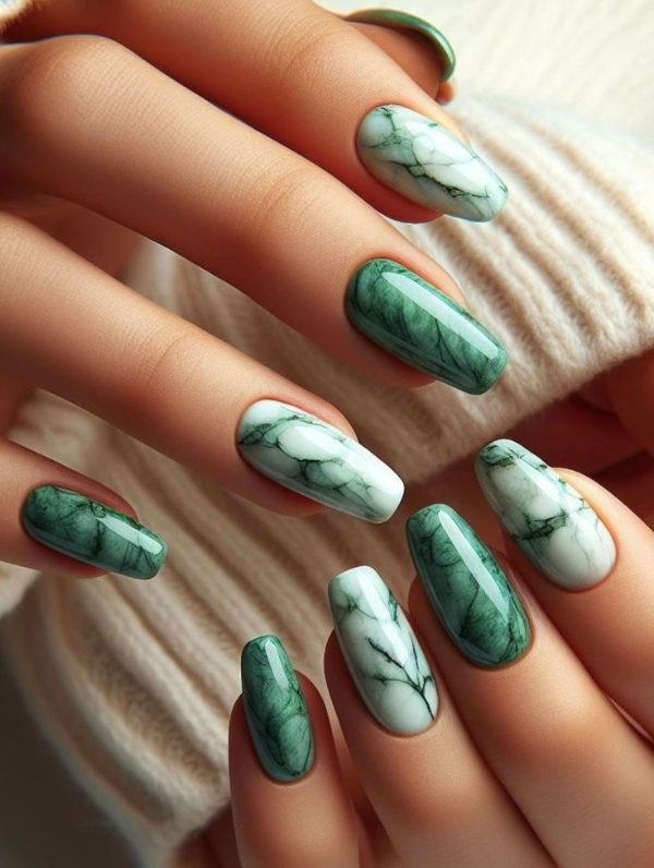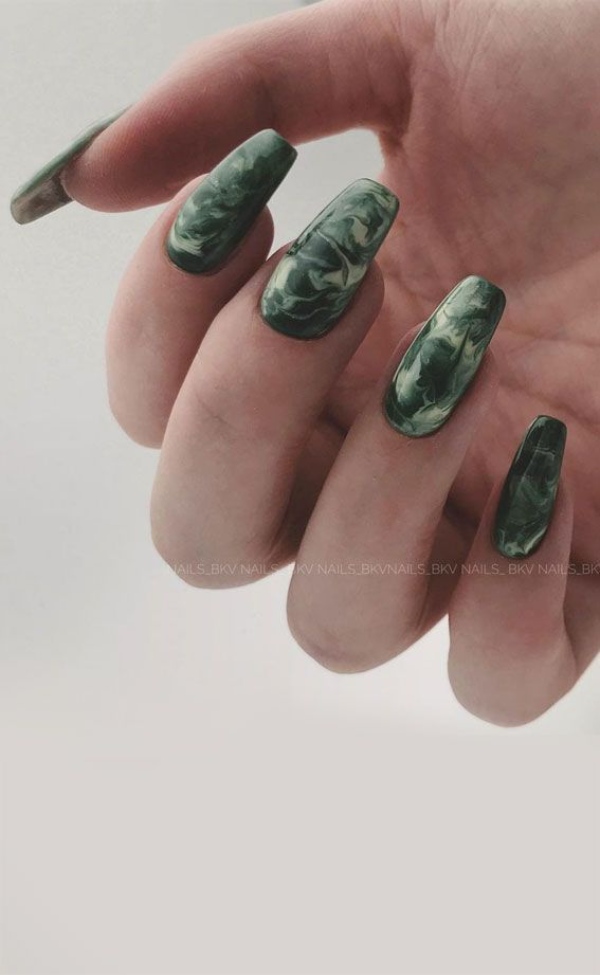 ایده شیک برای ناخن بلند با طرح سبز مرمری
