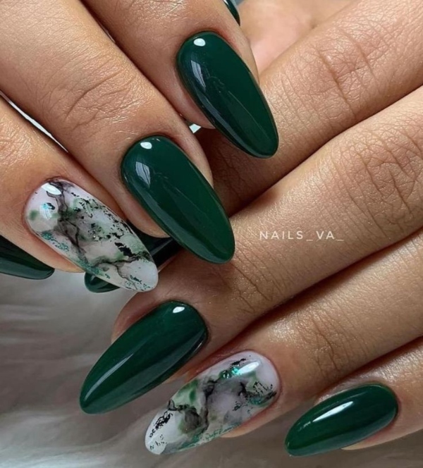مدل طراحی ناخن بلند سبز مرمری تیره
