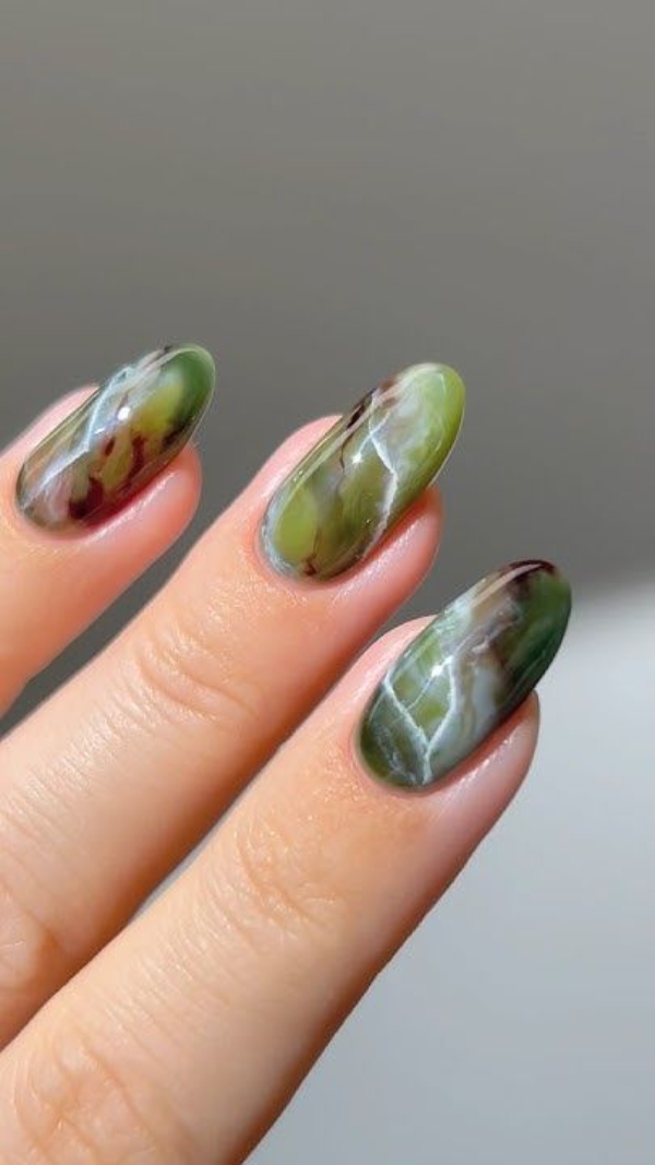 جدیدترین مدل‌های ناخن سبز ماربل یا مرمری | بهترین ایده‌های دخترانه و پاییزی