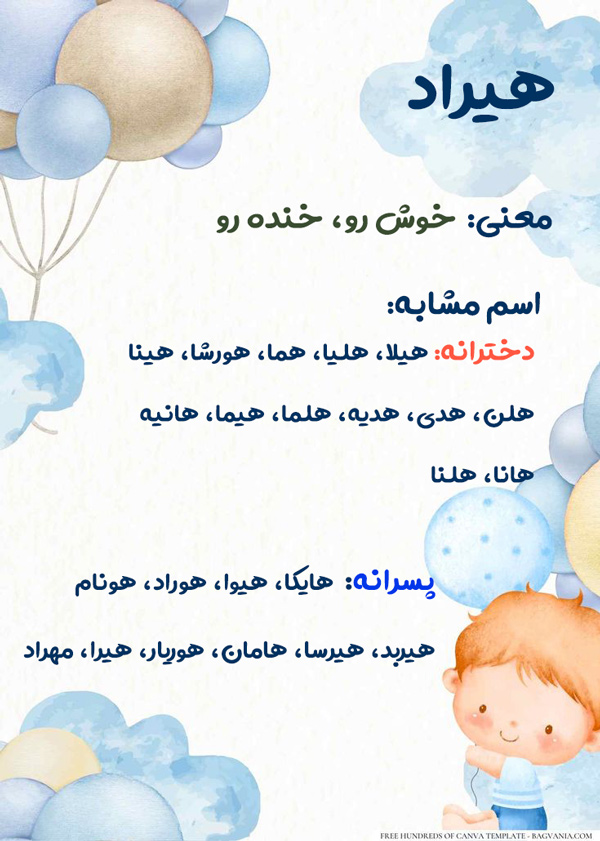 در میان اسامی اصیل پسرانه، هیراد از جمله اسامی پسر که به حرف د (دال) ختم می شود بوده و بسیار زیباست. اگر مایل هستید برای فرزند خود این نام را برگزینید و به دنبال معنی اسم هیراد، فراوانی و دیگر اطلاعات مربوط به آن هستید، با ما همراه باشید.