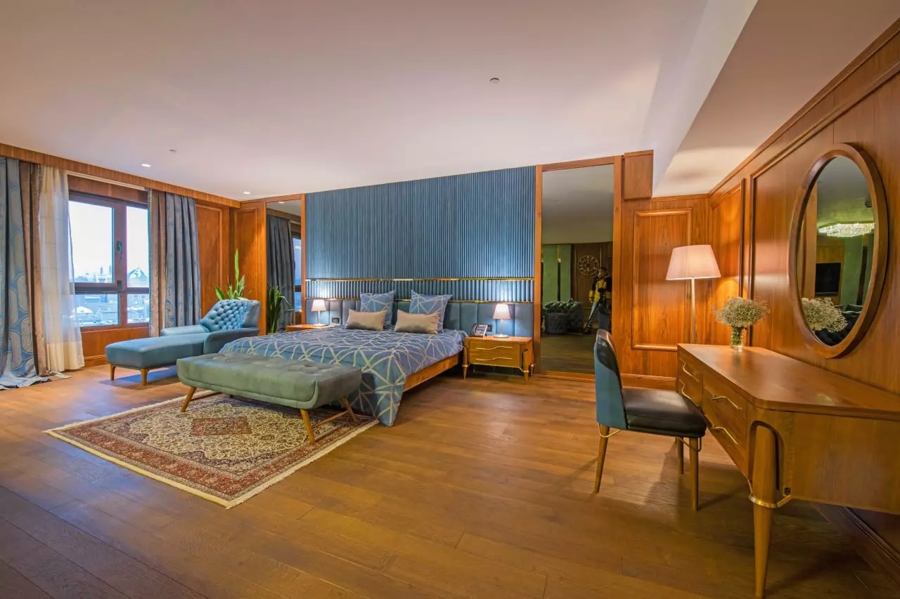 اتاقها و سوئیتهای هتل هم به همین شکل طراحی شدهاند؛ با این تفاوت که در طراحی آنها از سبکهای معماری کشورهای مختلف استفاده شده است. بهعنوانمثال شما میتوانید در اتاقی به سبک تمدن آفریقا اقامت داشته باشید یا اتاقی به سبک تمدن روسیه را رزرو کنید. البته اتاقهایی به سبک تمدن ایران باستان و تمدن صفویه هم در این هتل وجود دارند که میتوانند انتخاب جذابی برای علاقمندان به معماری ایرانی باشند. سالنهای پذیرایی، رستورانها و کافههای این هتل هم بسیار تجملاتی هستند و انتخاب خوبی برای برگزاری جشنها یا قرار ملاقاتهای مهم و رسمی به شمار میروند.