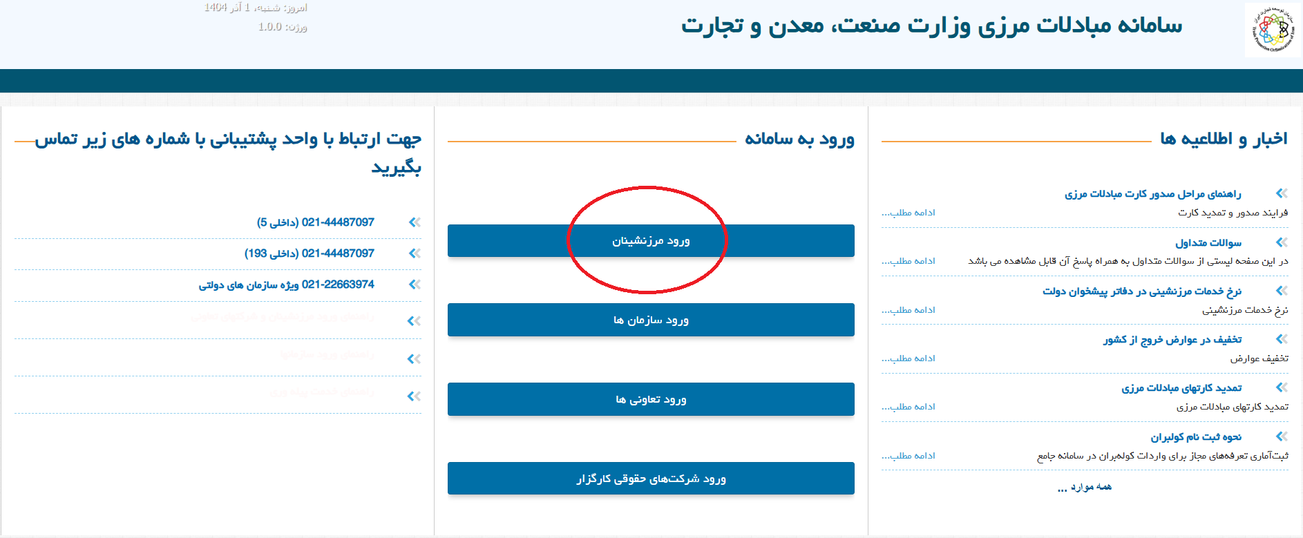 • جهت پیگیری صدور کارت مرزنشینی ابتدا وارد وب‌سایت marz.taarco.ir  شوید و گزینه «ورود مرزنشینان» را انتخاب کنید.