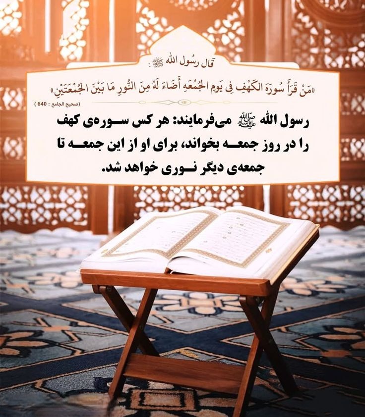 پیامبر اسلام (ص) در روایت دیگری درباره فواید خواندن سوره کهف روز جمعه فرموده است: