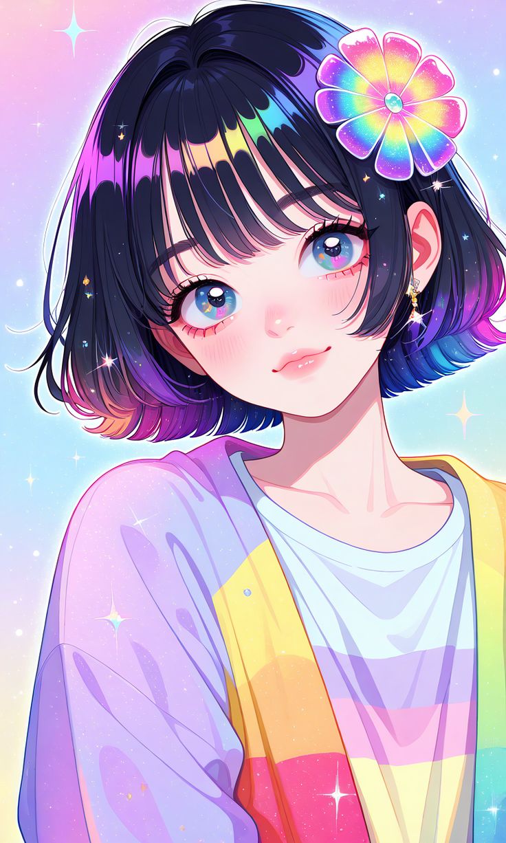 نقاشی انیمه دخترانه با رنگهای جذاب و پاستلی