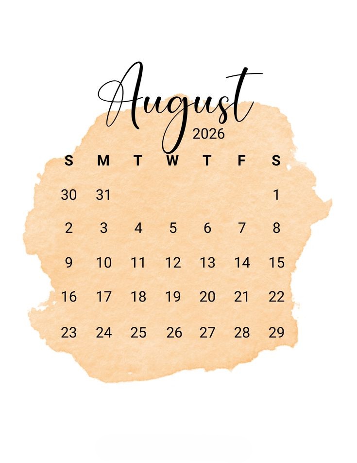 تقویم آگوست ۲۰۲۶