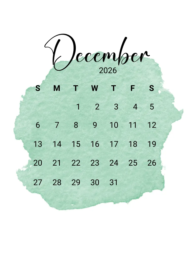 تقویم دسامبر ۲۰۲۶