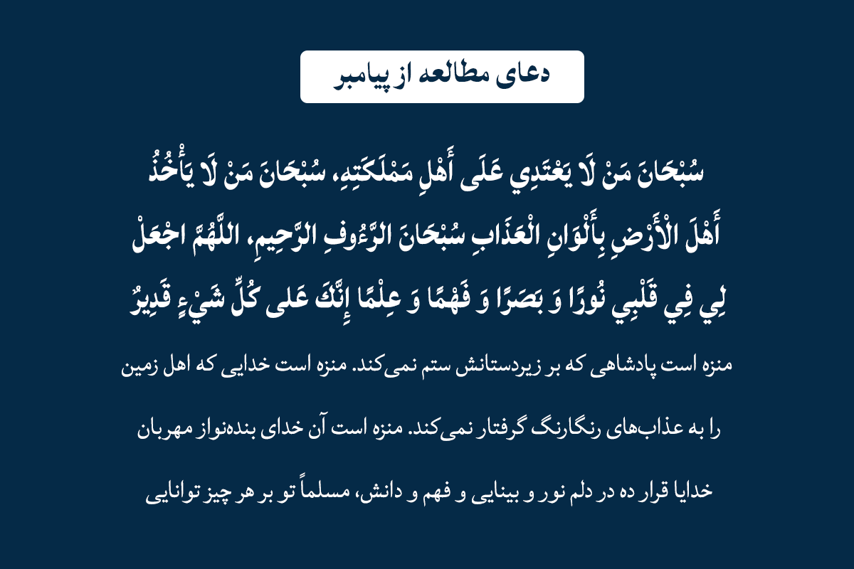 برای انتقال به صفحه متن کامل دعا وقت مطالعه پیامبر روی لینک زیر کلیک کنید