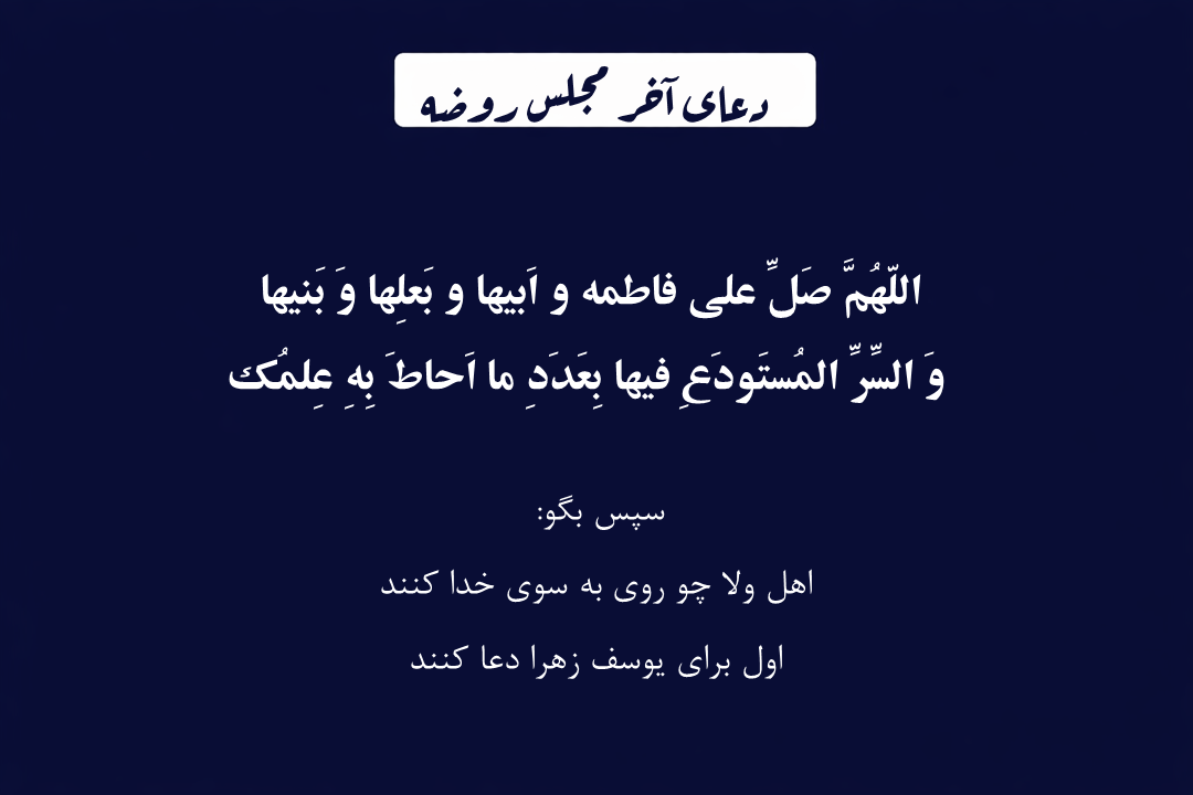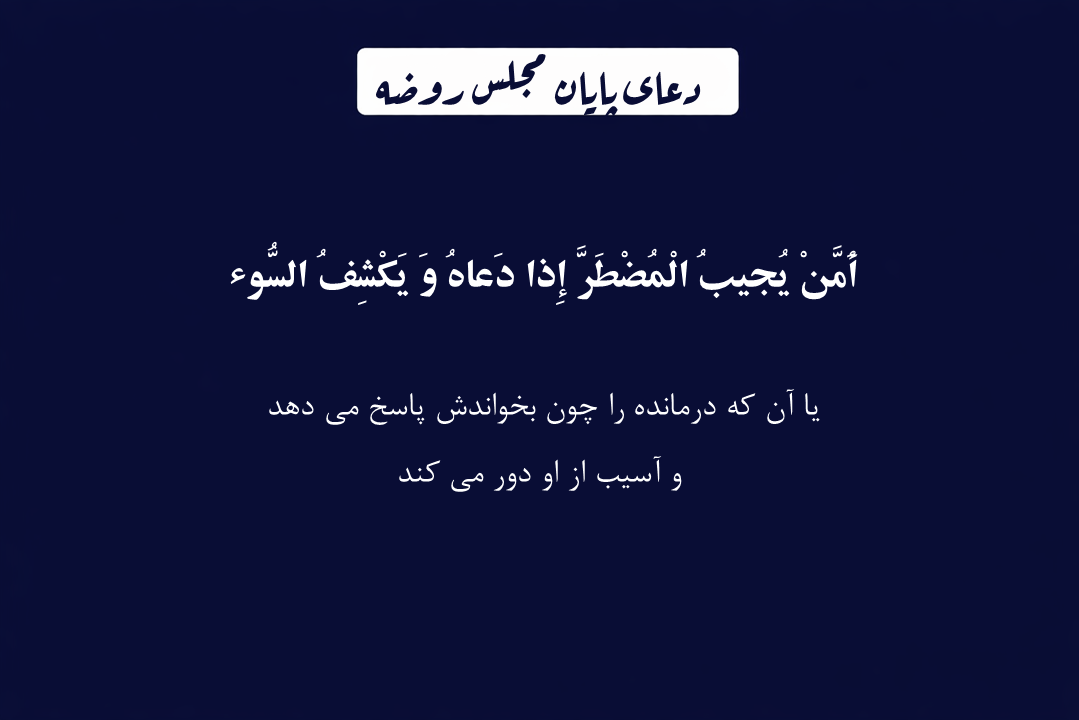 مجموعهای از دعای آخر مجلس مداحی، دعای پایان روضه و ختم مجلس به فارسی و عربی؛ مناسب مجالس عزاداری، ترحیم و مراسمات مذهبی.