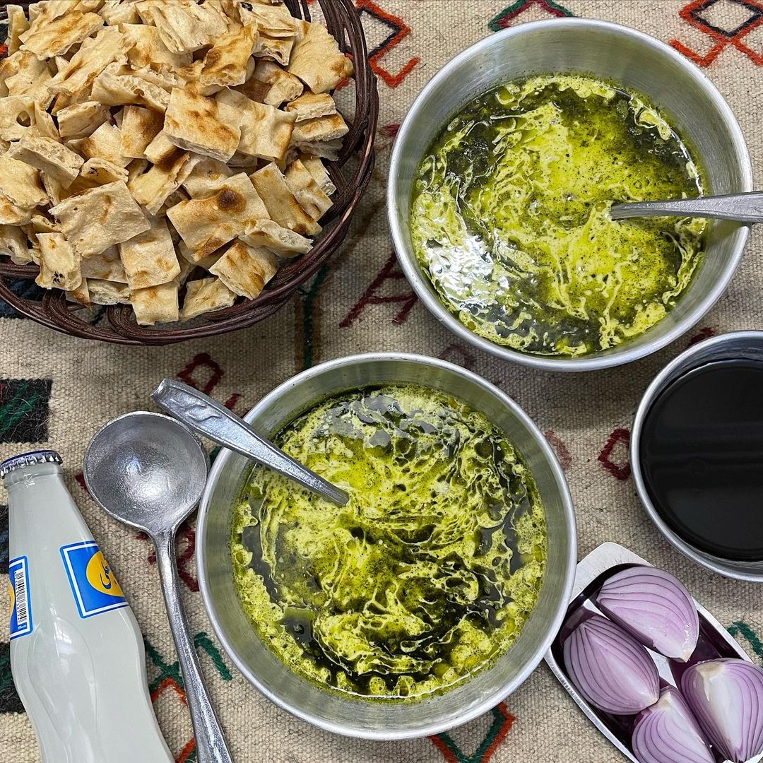 مرحله یازدهم: وقتی غذا جا افتاد، قابلمه را از روی حرارت بردارید و غذا را در ظرفی مناسب بکشید و با گردو، نعناع داغ و پیازداغ تزیین کنید و با نان نوش جان کنید. در نظر داشته باشید که بسیاری افراد مقداری نان سنگک داخل این غذا خرد کرده و مثل دیزی آن را میل میکنند.