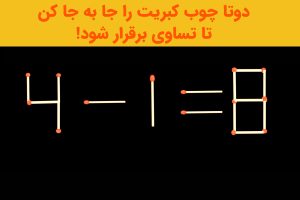 در ادامه این مطلب با یک بازی فکری معمای چوب کبریت سخت روبه رو هستید. یک عبارت وجود دارد که باید با حرکت ۲ چوب کبریت تساوی را برقرار کنید. در این معما بازی فکری شما باید مشکل را شناسایی...